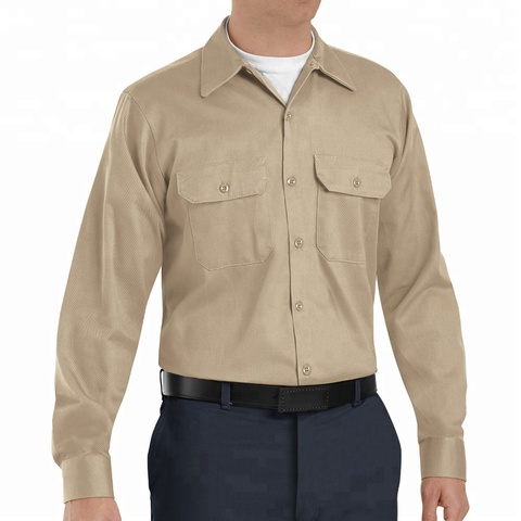 แขนยาวสีกากีน้ำหนักสิ่งทอลายทแยงผ้าฝ้ายความปลอดภัย guard ชุดเสื้อ